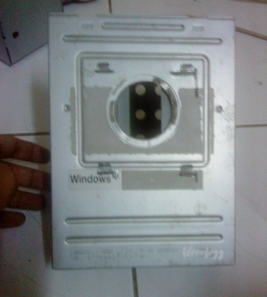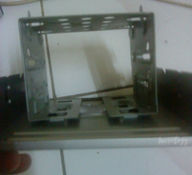 I simply gutted the dead optical drive and cut slits into the bottom piece. The hard disk rail has slats which was then inserted into the slits, and bended to secure it. An 180 MM cooling fan was later added for cooling purposes.